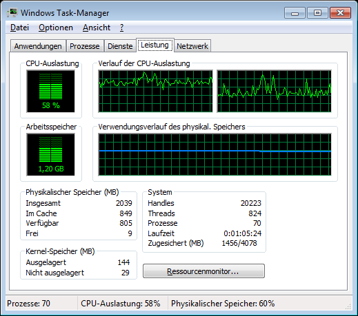 Das Laden des Kartenmaterials erzeugt auf den zwei Kernen 60% Last – durchgehend. Und das ist nur der Vorgang, Daten vom Server im Internet auf die Festplatte zu übertragen.