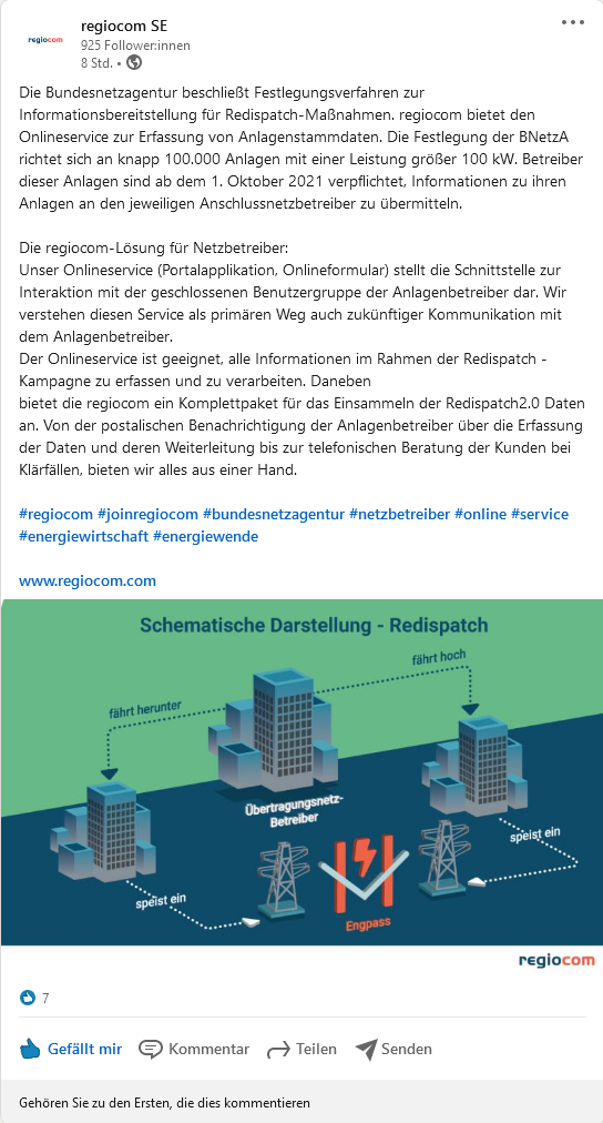 Heute wurde der Post bei LinkedIn veröffentlicht: das Redispatch-Stammdaten-Portal ist online.