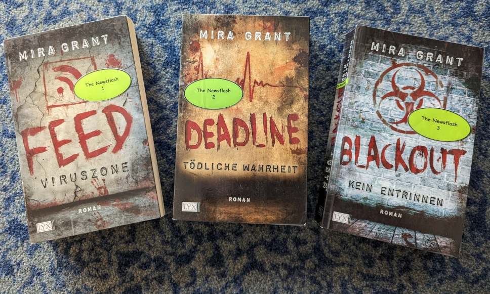 Die drei Bücher von Mira Grant erzählen die Geschichte eines Geschwisterpaares, das als Reporter einer Verschwörung auf die Schliche kommt.