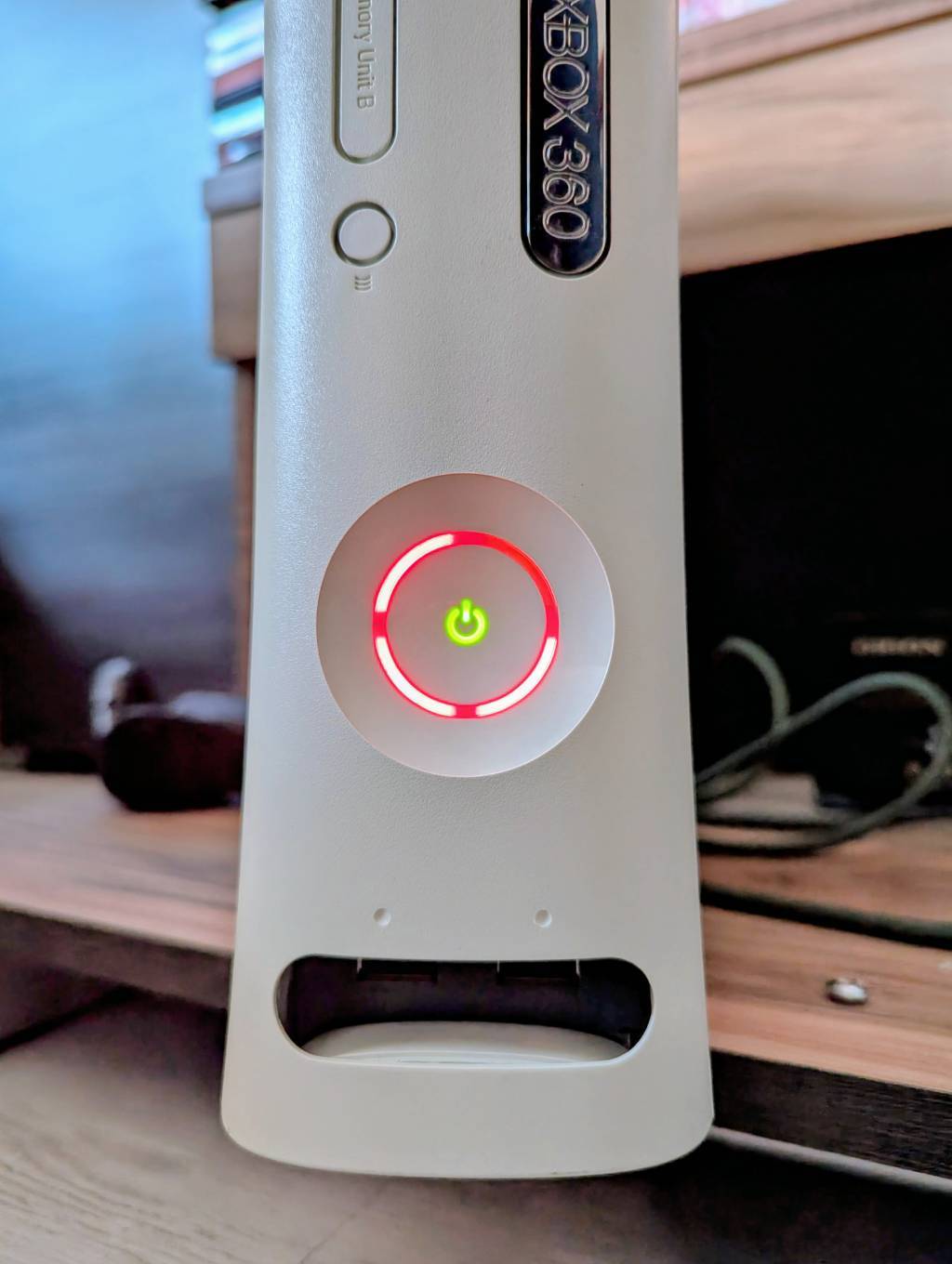 Gestern wollten wir wieder eine Runde klampfen, aber die Stimmung kippte abrupt, als beim Einschalten der Konsole das als Roter Ring des Todes bekannte Leuchten der LEDs erschien.
