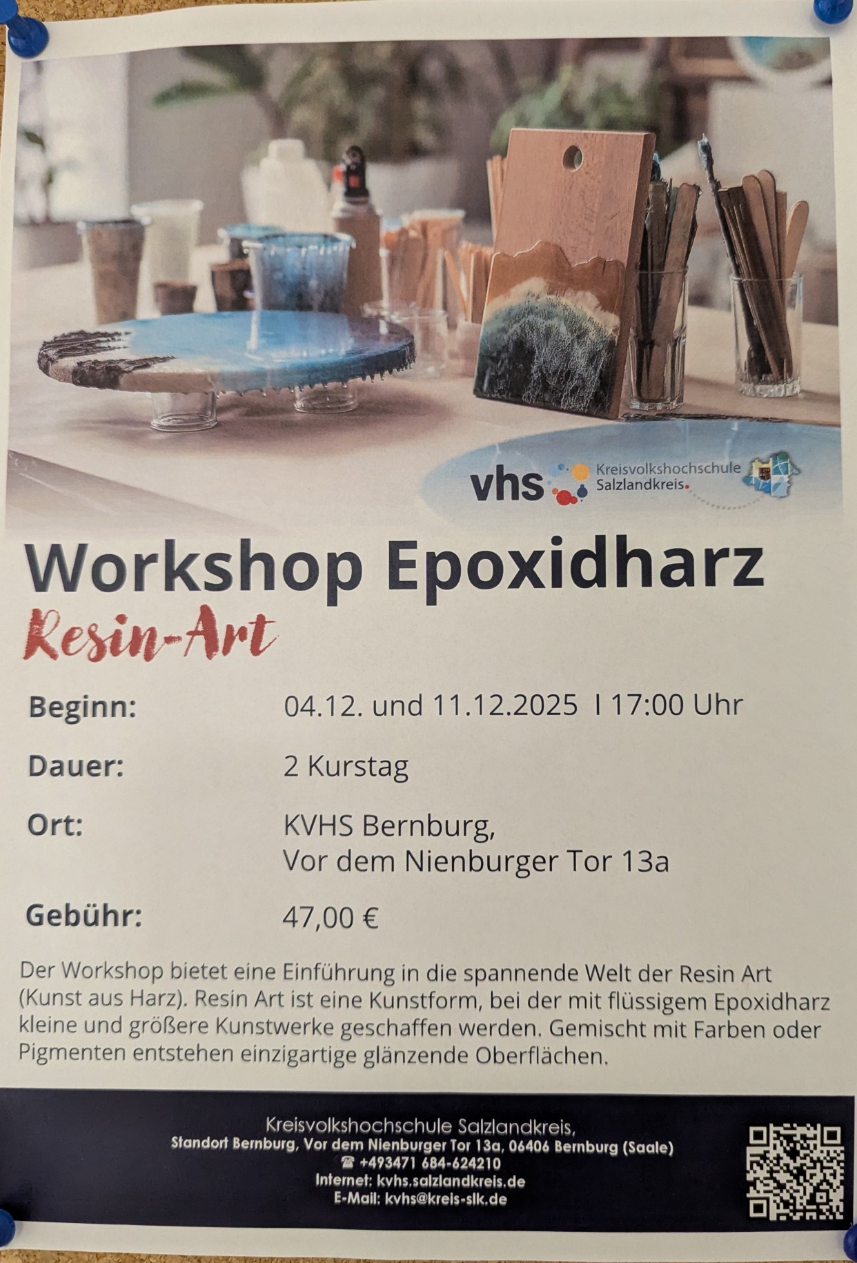 An der Kreisvolkshochschule gab es einen zweitägigen Workshop Epoxidharz.