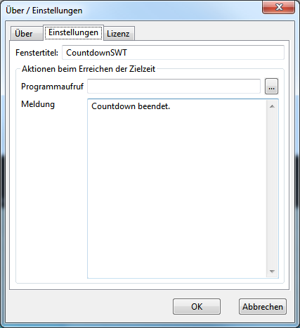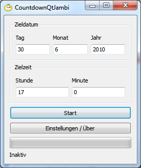 Dieses Programm nimmt ein Datum und eine Uhrzeit entgegen und berechnet dann, wie lange es bis zu diesem Zeitpunkt dauert. Am Ende kann eine Meldung angezeigt und ein Programm gestartet werden. Dateien Webstartaufruf SWT-Version Webstartaufruf QtJambi-Version Neuen Kommentar hinzufügen
