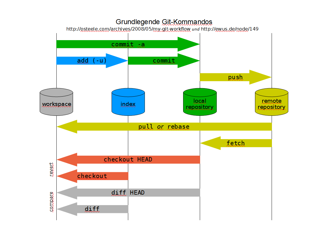 Gespeichert von Erik Wegner am/um Mo., 28.06.2010 - 16:06 Versionsverwaltung i Git i Body Darstellung der grundlegenden Git-Kommandos zur Verwaltung des Quelltextes und der Repositories.Quelle: http://osteele.com/archives/2008/05/my-git-workflow Neuen Kommentar hinzufügen Files Anhang Größe git.odg 14.54 KB git.pdf 43.15 KB